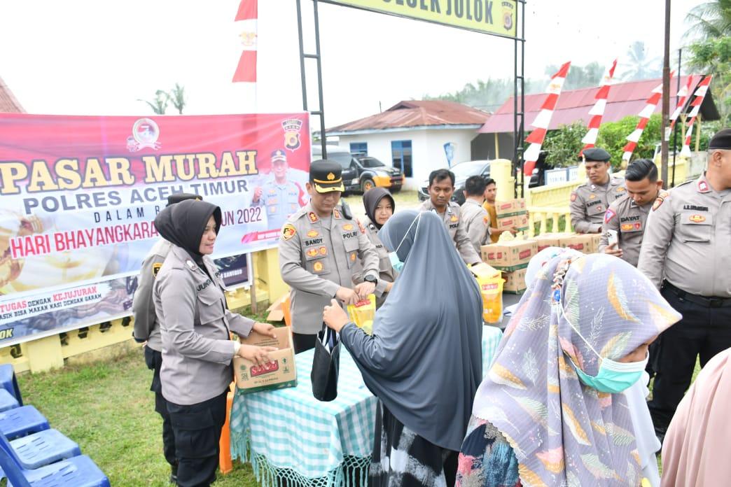 Polres Aceh Timur Gelar Operasi Pasar Murah Minyak Goreng Sambut Hari Bhayangkara Ke-76