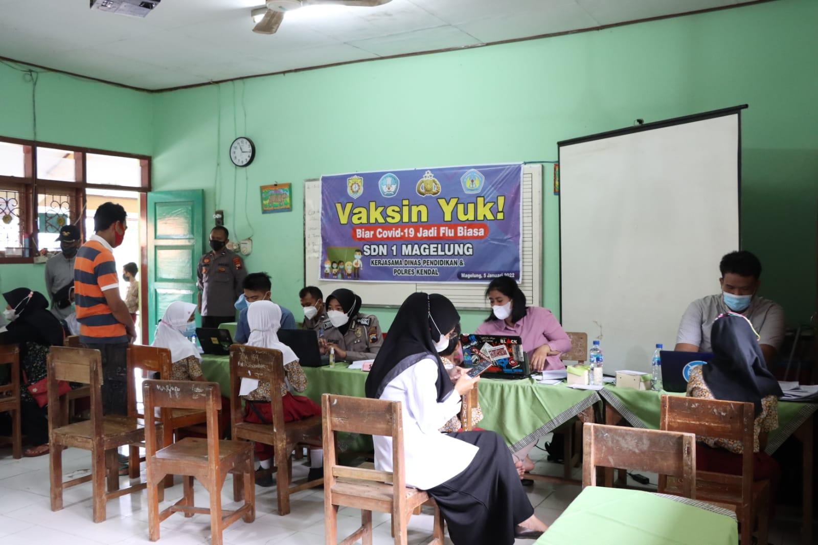 Polres Kendal Gelar Vaksinasi Merdeka Anak Usia 6 -11 Tahun Di SDN 1 Magelung