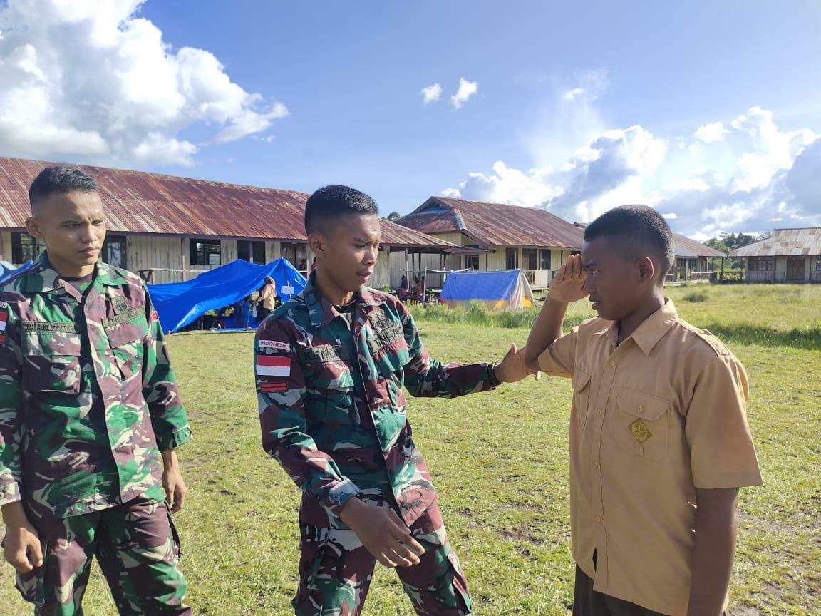 Prajurit TNI Satgas Pamtas Yonif 126/KC Berikan Pelatihan Pramuka Kepada Anak-Anak di Perbatasan Papua