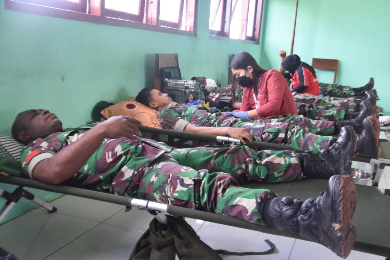 Puluhan Prajurit Korem 174/ATW Merauke Melakukan Aksi Donor Darah
