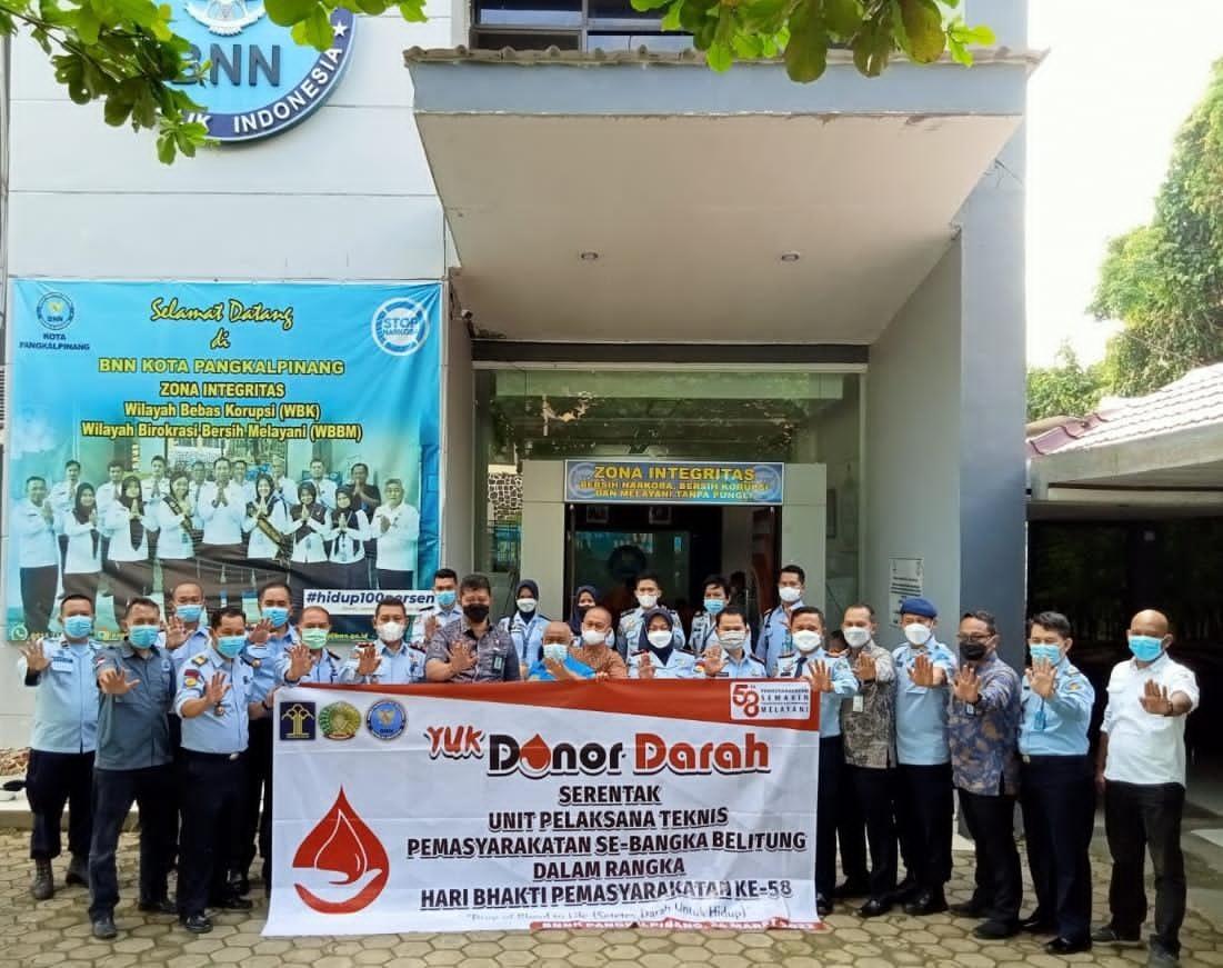 PANGKALPINANG – Dalam rangka Hari Bhakti Pemasyarakatan ke- 58, Kepala Divisi Pemasyarakatan Kanwil Kemenkumham Babel Agus Irianto beserta Jajaran Petugas Pemasyarakatan mengikuti kegiatan donor darah di Badan Narkotika Nasional Kota Pangkalpinang, Kamis (24/3/2022).