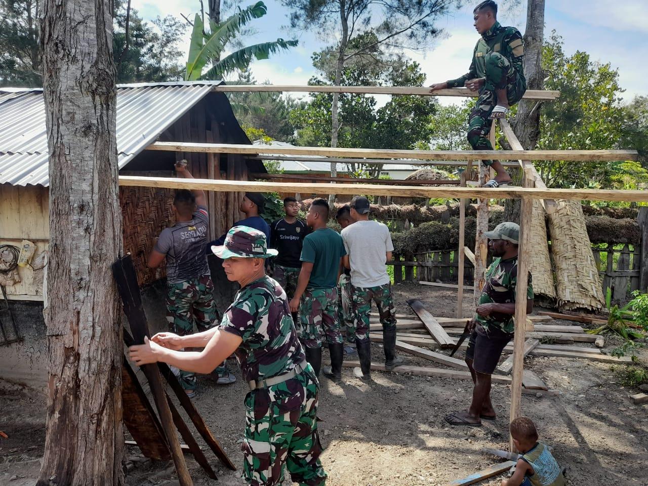 Rehab Rumah Warga Di Papua Semakin Mudah, Sejak Kehadiran Satgas Pamtas Yonif Raider 142/KJ
