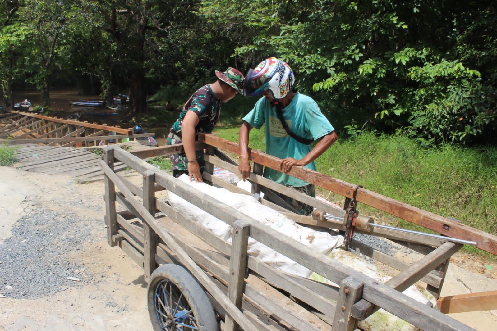Disela waktu istirahat mengerjakan pembangunan sasaran TMMD Reguler ke-116 Kodim 1012/Buntok, tidak jauh berada dekat dengan tempatnya bekerja anggota satgas melihat warga petani karet yang sedang mengangkut hasil kebunnya, anggota satgas pun lansung menyambangi dengan cepat, untuk membantu mengangkut hasil kebun getah karet yang di bawa dari kebun untuk di jual.