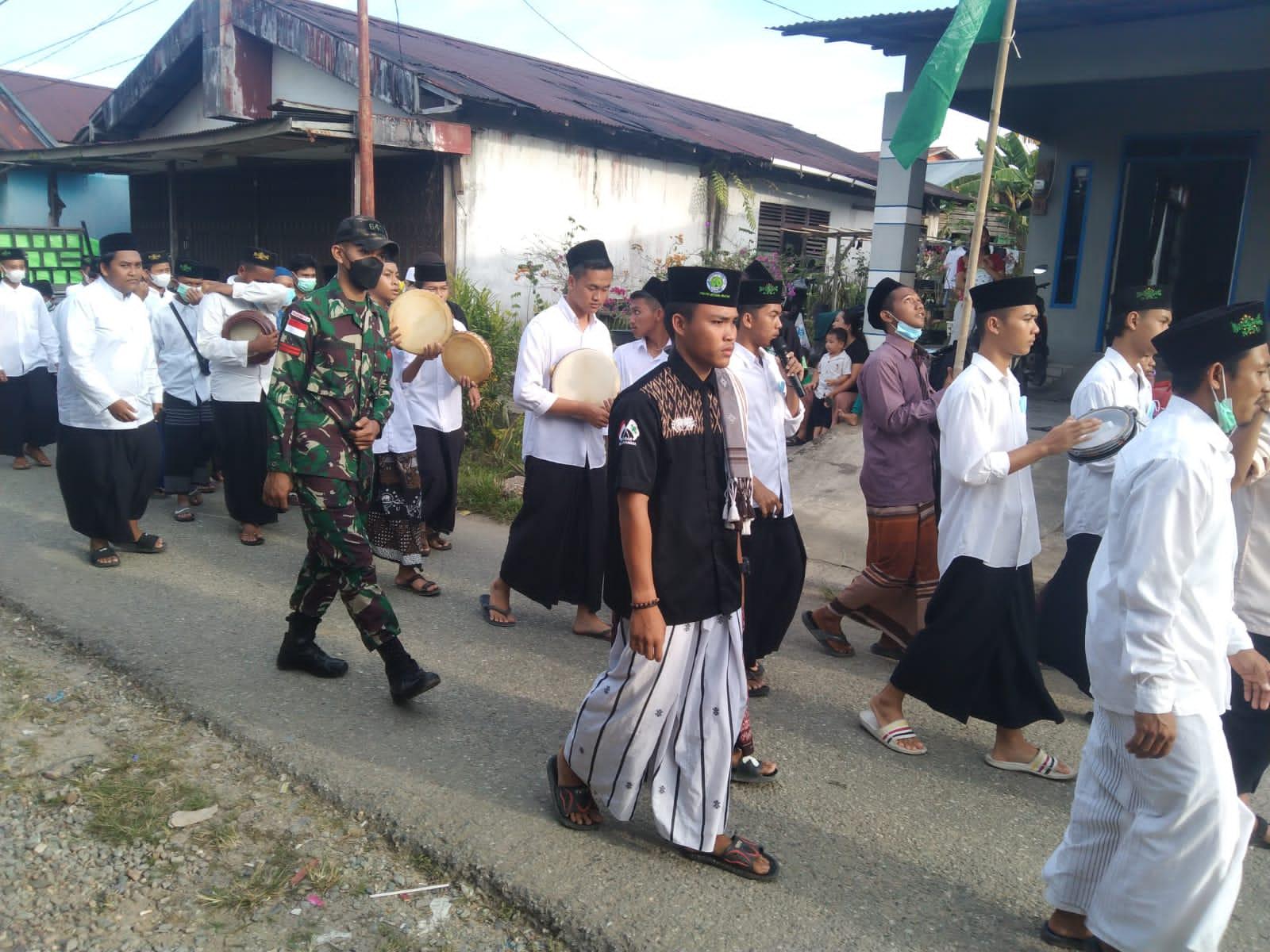 Sambut Ramadhan, Satgas Pamtas Mekanis 643/Wns Bersama Polri Dampingi Pawai Taโaruf Di Perbatasan