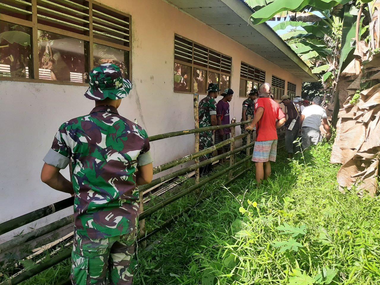Satgas Kodim Maluku Yonarhanud 11/WBY Ajak Masyarakat Untuk Membuat Pagar Sekolah