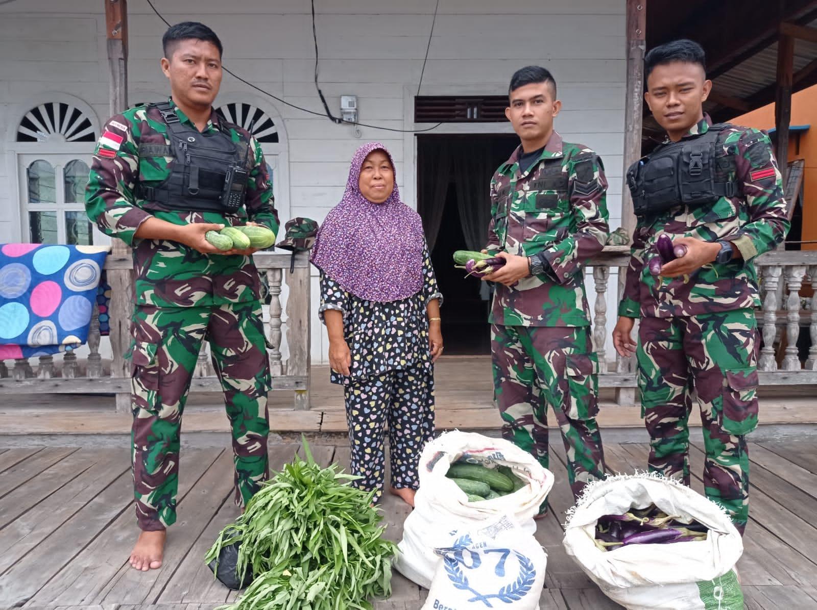 Satgas Pamtas RI-Malaysia Yonarmed 19/105 Trk Bogani Membagikan Hasil Pertanian dari Lahan Ketahanan Pangan ke Warga Pulau Majang
