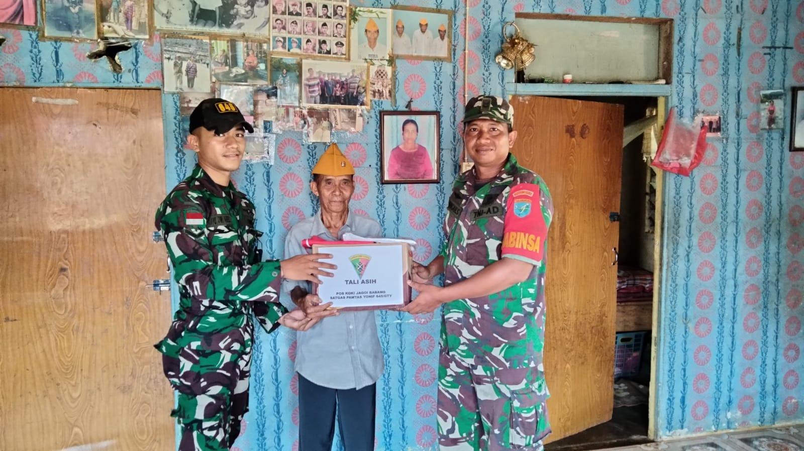 BENGKAYANG − Dalam rangka memperingati Hari Veteran Nasional 10 Agustus dan peringatan HUT Kemerdekaan RI ke-77, Pos Koki Jagoi Babang Satgas Pamtas Yonif 645/Gty Dipimpin Lettu Inf Prayudy beserta Babinsa Koramil Jagoi Srd I Nengah melaksanakan silahturahmi kepada Legiun Veteran RI diwilayah Kec. Jagoi Babang sekaligus pemberian Tali asih dan Sargal berupa Kaos dan Bendera Merah Putih. Rabu, (10/08/2022)
