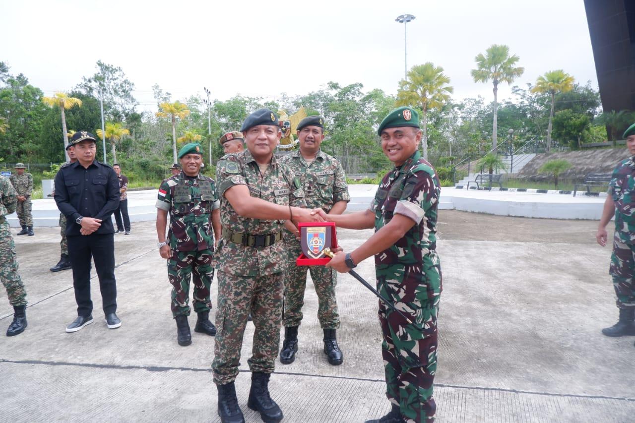KAPUAS HULU – Dankolakopsrem 121/Abw Brigjen TNI Pribadi Jatmiko bertindak sebagai Inspektur Upacara dalam Penutupan Patroli Koordinasi Seri 2/2022 di wilayah perbatasan darat Kalimantan Barat RI-Malaysia yang dilaksanakan di PLBN Badau, Kecamatan Nanga Badau, Kabupaten Kapuas Hulu, Kalimantan Barat. Kamis, 1 Desember 2022.