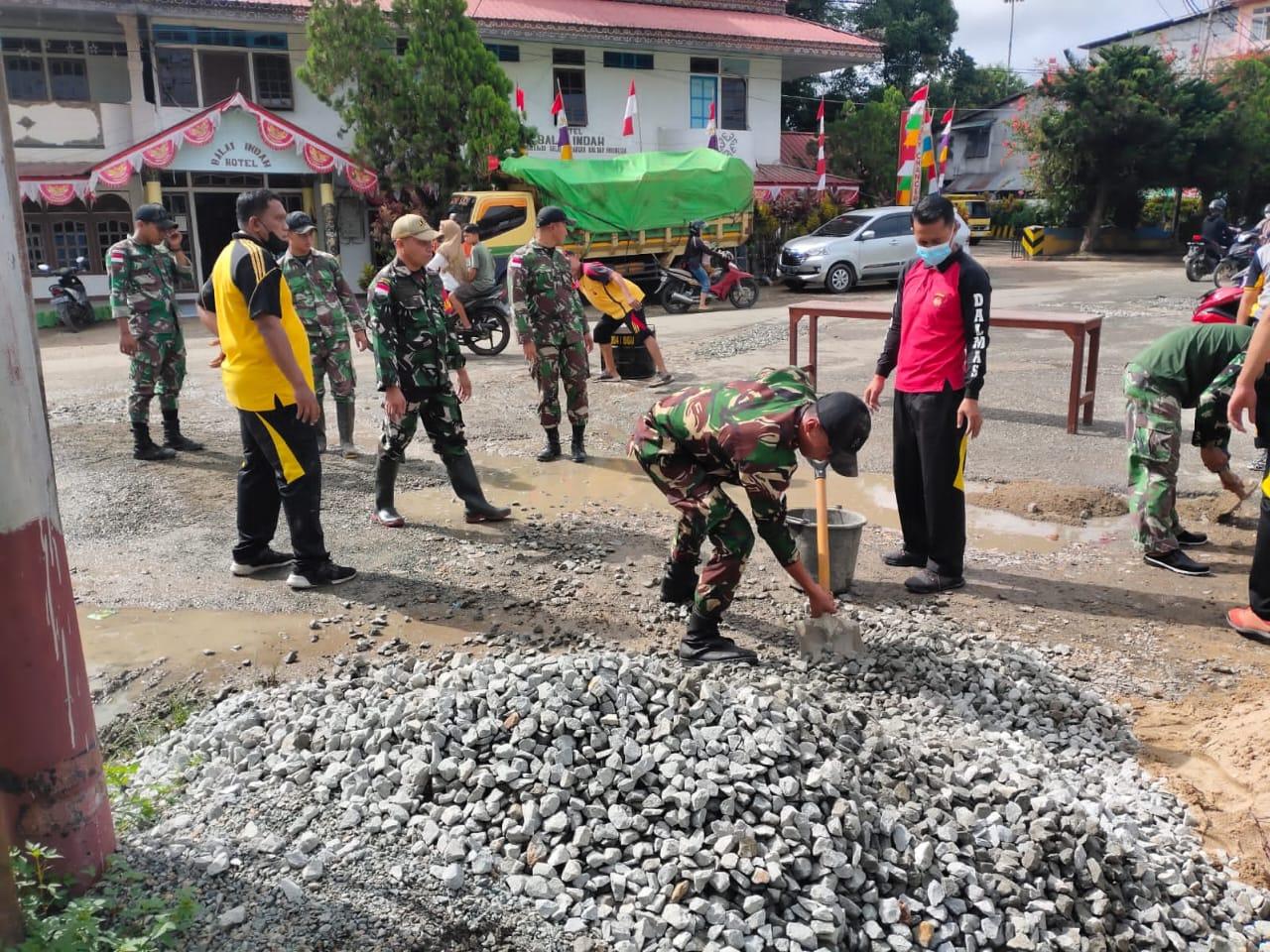 Satgas Pamtas Yonif 645/Gty Karya Bakti Pengecoran Jalan Raya di Perbatasan