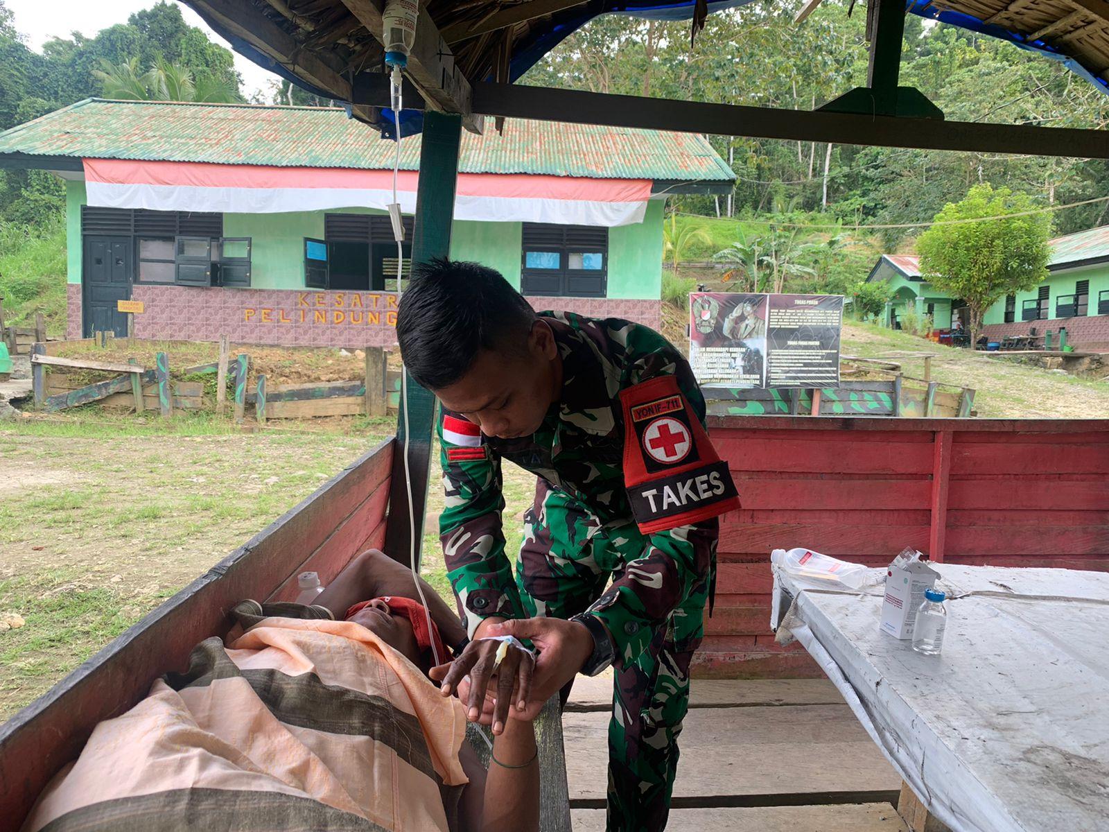 Satgas Pamtas Yonif 711/Rks Beri Pertolongan Kepada Warga Yang Sakit Malaria
