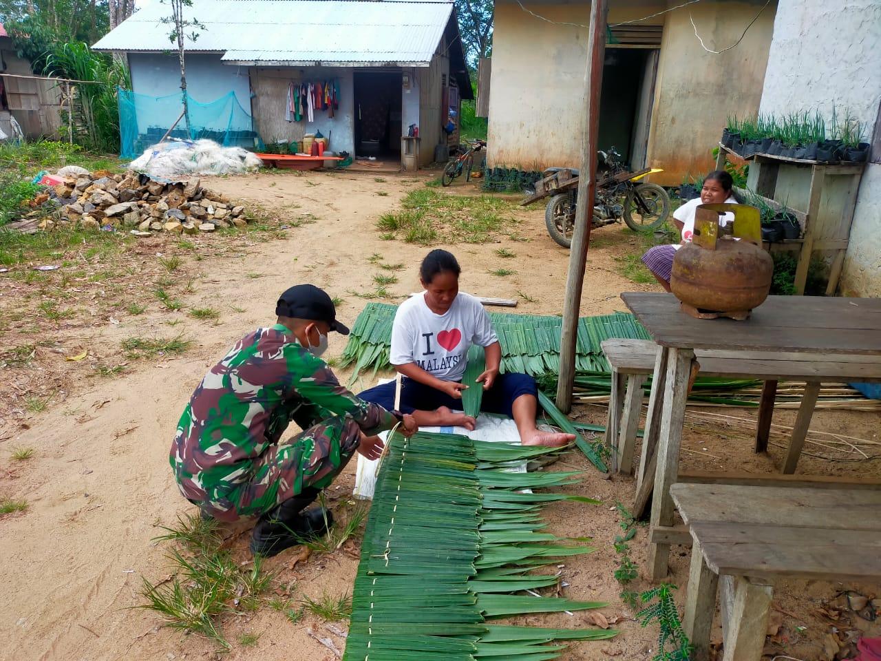 Satgas Pamtas Yonif Mekanis 643/Wns Berikan Semangat Dan Motivasi Bagi Pengrajin Atap Daun di Perbatasan