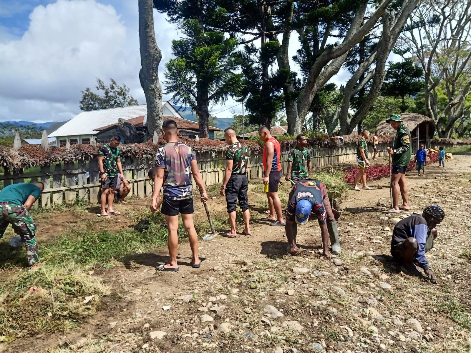 Hal inilah yang dilakukan oleh Satgas Pamtas Yonif Raider 142/KJ melalui Pos Bolakme melakukan kegiatan pembersihan fasilitas umum yaitu jalan bersama warga dihadiri Bapak Yosia Komba selaku Mantan Kepala Kampung sekaligus tokoh masyarakat yang disegani, bertempat di kampung Bolakme, Distrik Bolakme, Kab. Jayawijaya, Papua, Rabu (13/07/2022).