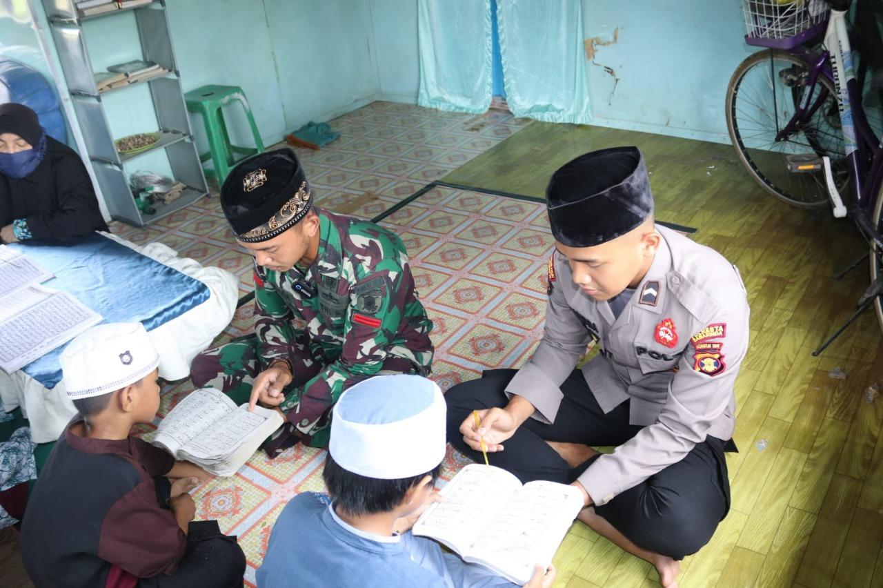 Dua anggota Satgas TNI-Polri Pratu Andika Khoironi Alzabi dan Bripda Chandra Aditya Prayoga, keduanya secara rutin mengajar anak – anak mengaji.
