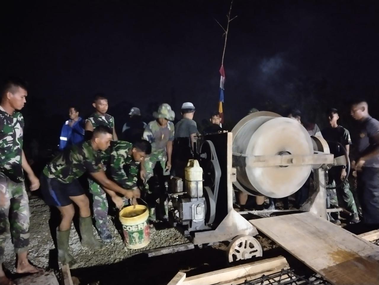 Dan SSK TMMD 115 Kodim 0901/Smd Letda Inf Nurkholis mengungkapkan bahwasanya pada hari ini Sabtu malam mengerahkan semua personil, bersama-sama memacu pekerjaan sasaran fisik yaitu pengecoran Plat Duicker di STA 850.