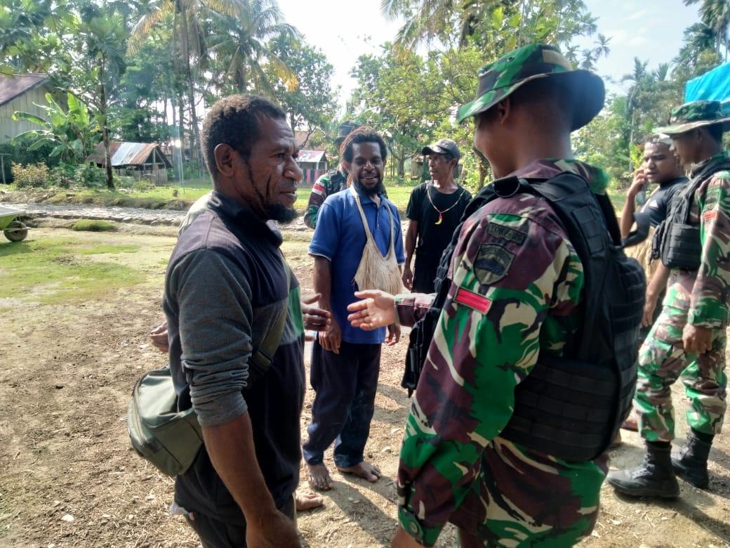 KEEROM – Dalam rangka memperkuat pembinaan teritorial di wilayah perbatasan Papua, personel Satgas Pamtas RI-PNG Yonif 126/Kala Cakti Pos Batom sapa warga perbatasan di Kampung Batom II, Distrik Batom, Kabupaten Pegunungan Bintang.