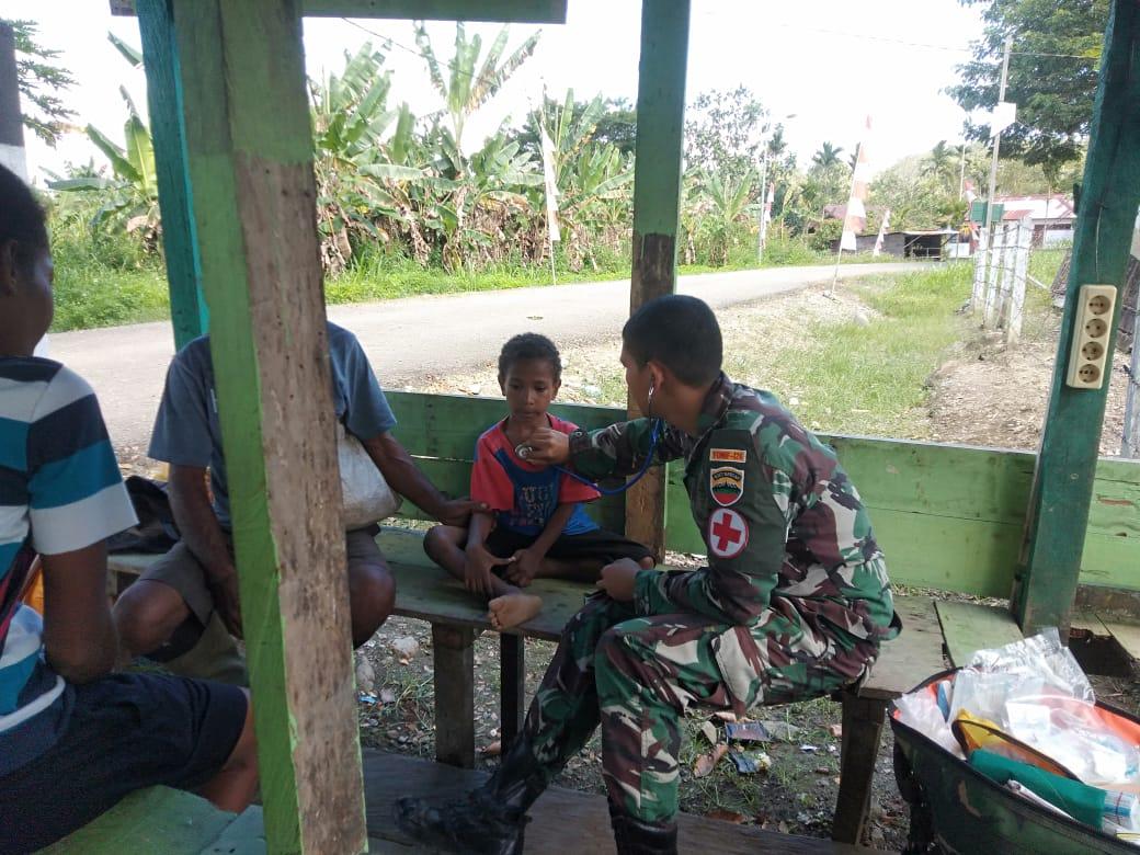 KEEROM – Dalam penanganan kesehatan di wilayah perbatasan, Satgas Yonif 126/KC memberikan pelayanan kesehatan secara gratis bagi masyarakat di setiap datang ke Pos-Pos salah satunya yang dilakukan Pos Waris di Kampung Banda, Distrik Waris, Kabupaten Keerom.