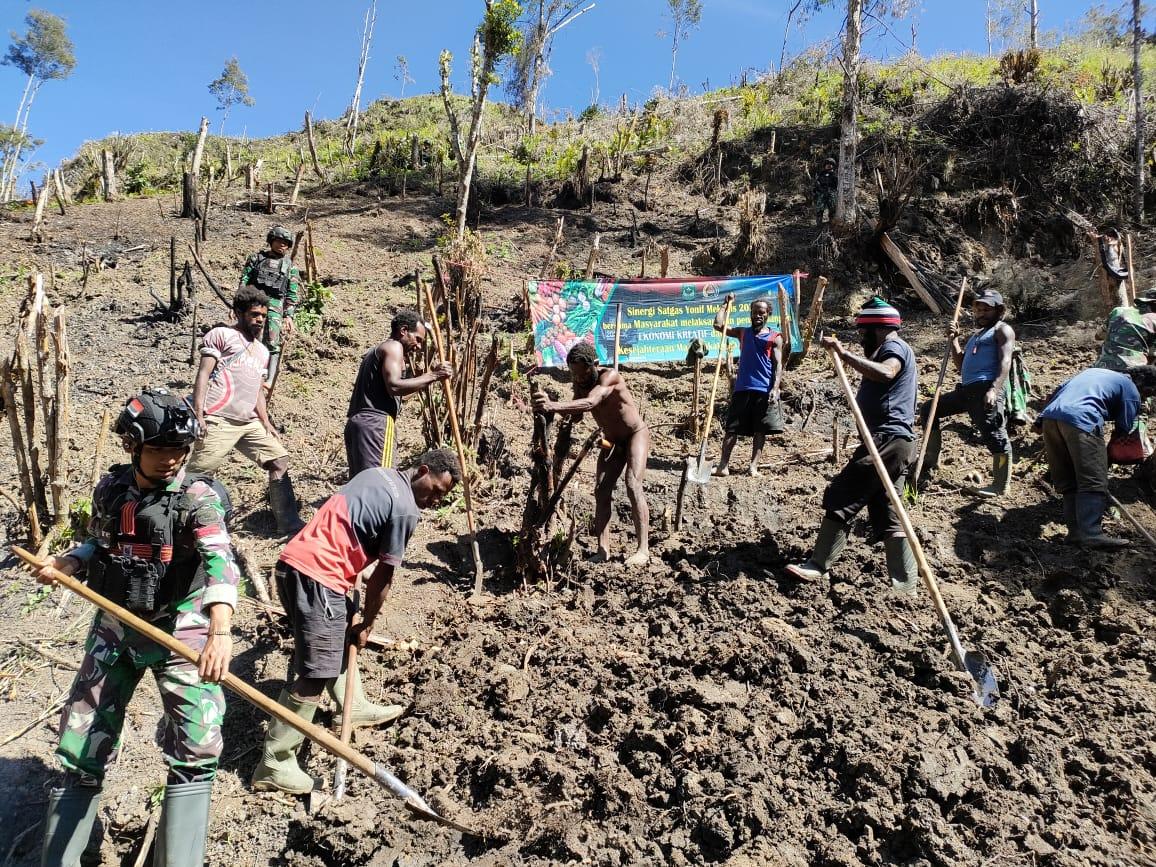 Satgas Yonif Mekanis 203/AK Buka Lahan Untuk Berkebun Bersama Masyarakat Desa Balime Distrik Balingga