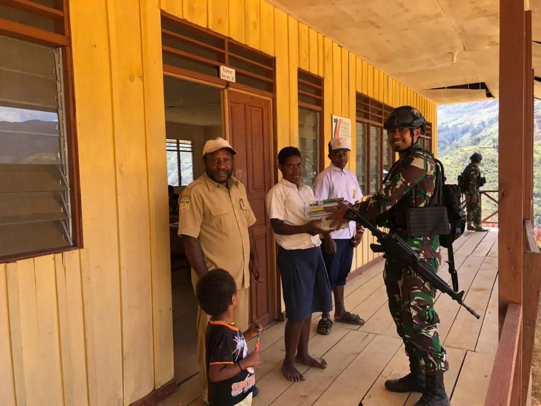 Satgas Yonif Mekanis 203/AK Terus Mendukung Kemajuan Dunia Pendidikan di Pegunungan Tengah