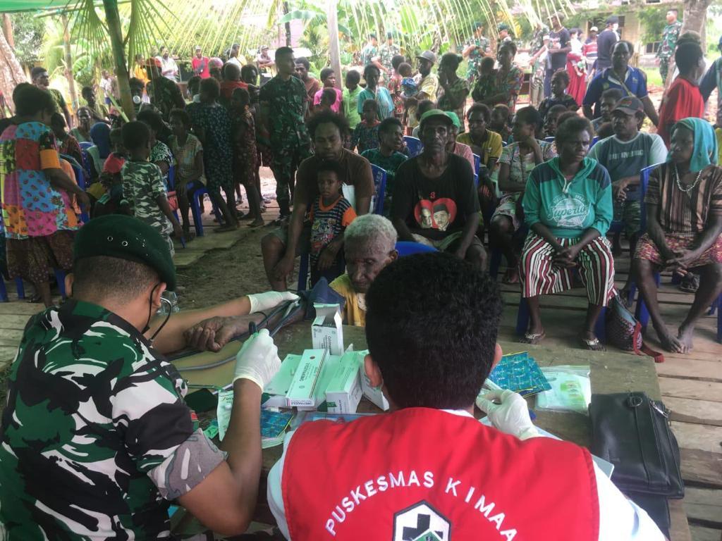 Satgas Yonif Raider 600/Modang Lakukan Pengobatan Dan Pembagian Nutrisi Gratis untuk Masyarakat