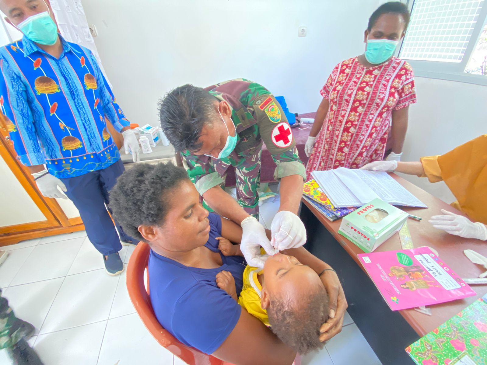 Sehatkan Anak-Anak Di Papua, Satgas Pamtas Yonif Raider 142/KJ Bersama Puskesmas Kelila Lakukan Imunisasi Rutin