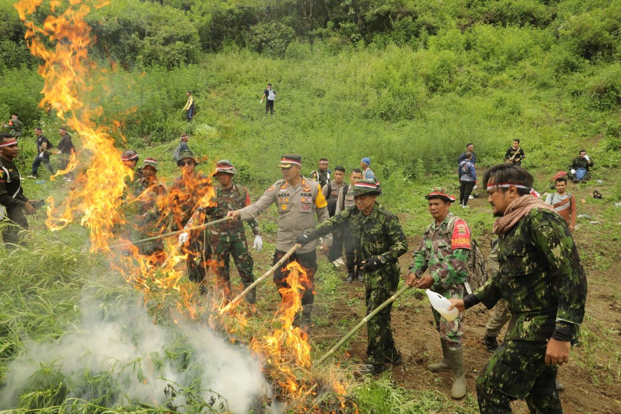 Pemusnahan ladang ganja ini sesuai dengan Pasal 111 Ayat (2) Undang – undang No. 35 Tahun 2009 tentang Narkotika, yang tertuang didalamnya terkait larangan menanam, memelihara, menyimpan, menguasai, atau menyediakan narkotika Golongan I jenis ganja dengan ancaman maksimal hukuman mati atau pidana penjara seumur hidup.