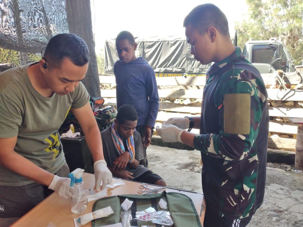 Seorang Anak Dengan Kondisi Tangan Berlumuran Darah Lari Ke Pos Satgas Yonif MR 412 Kostrad di Pedalaman Papua