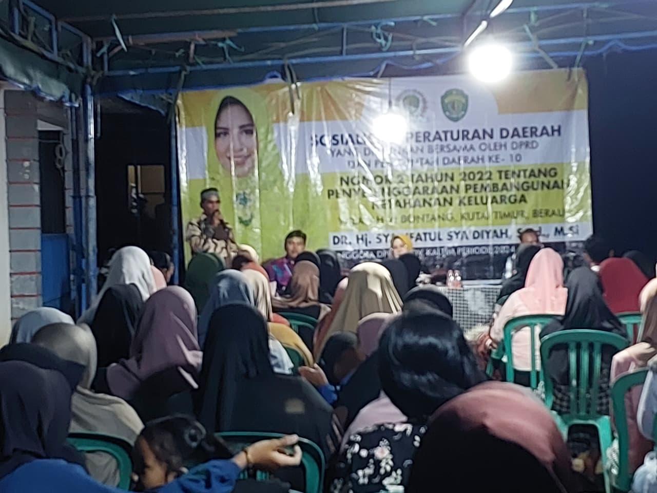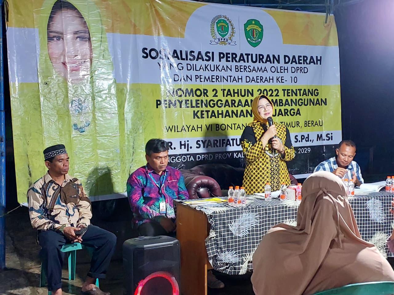 Sosilisasi tersebut digelar oleh Anggota DPRD Kaltim Syarifatul Sya’diyah di Jl. Singkuang Gg. Salak, Kelurahan Gunung Panjang, Kecamatan Tanjung Redeb, Senin (13/10/2025) malam.