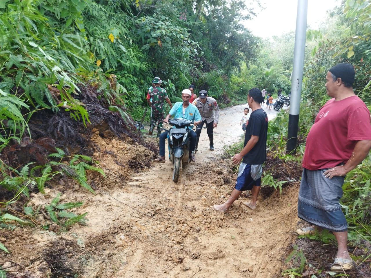 Tanggap Bencana, Babinsa Koramil 22/Lgsb Beserta Dinas Terkait Evakuasi Pohon Tumbang dan Tanah Longsor