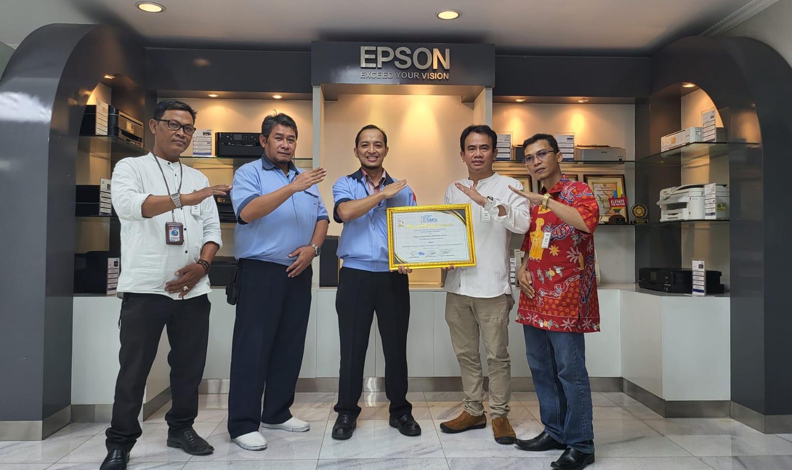 Penghargaan diserahkan pengurus SMSI Kabupaten Bekasi ke pihak perusahaan melalui 2 HR PT Indonesia Epson Industry, Salman dan Sapto, Jumat, 26 Agustus 2022 sore.