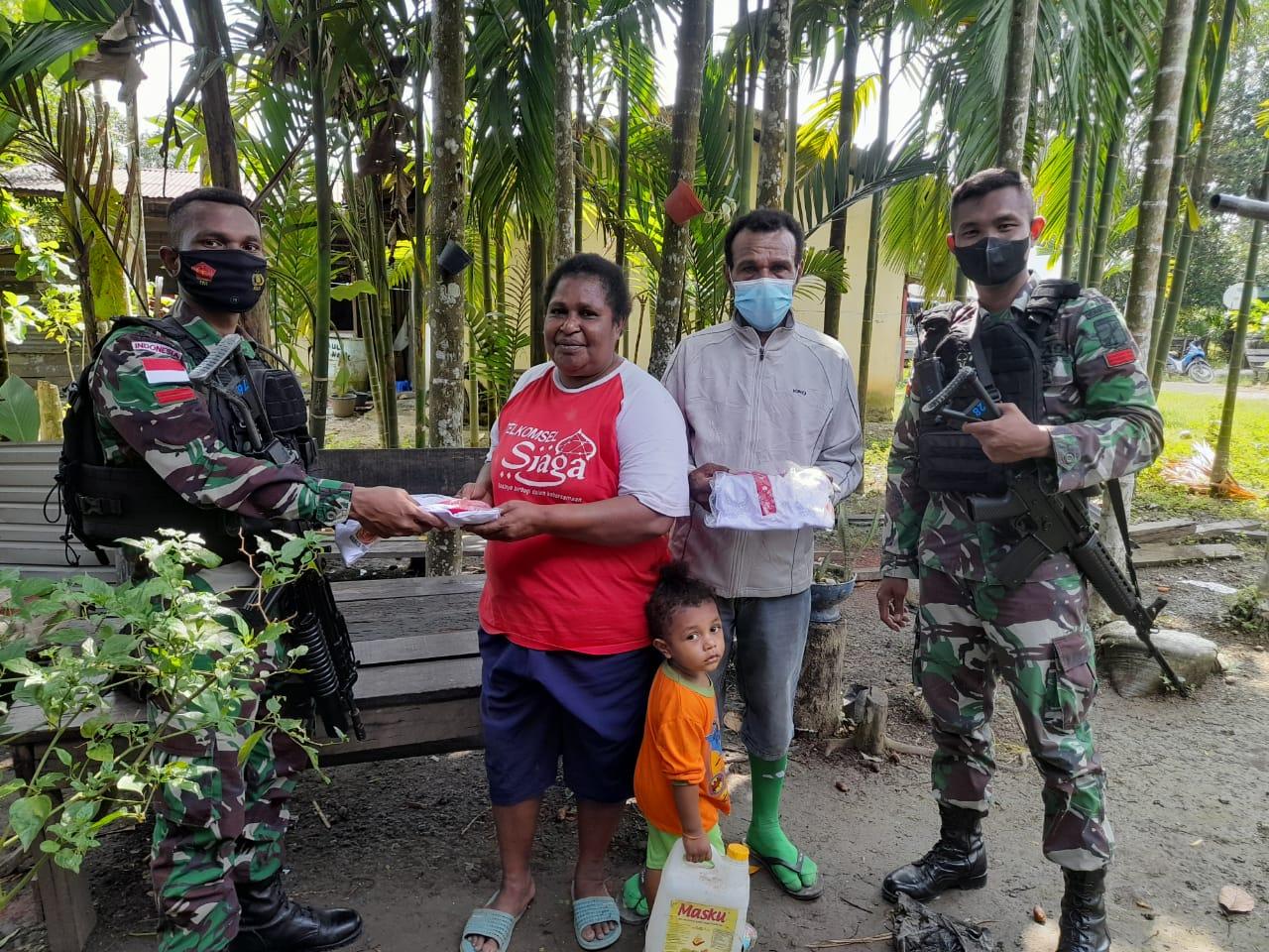 Tingkat Nasionalisme, Satgas Pamtas Yonif 711/Rks Bagikan Baju Merah Putih di Perbatasan RI
