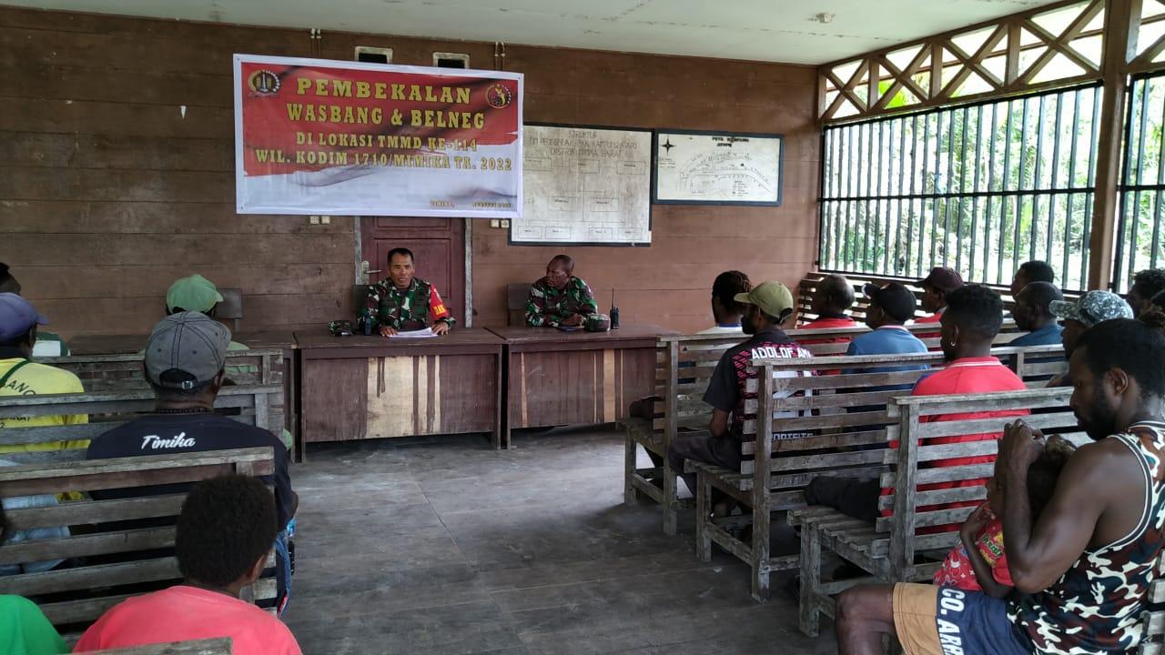 Dandim 1710/Mimika Letkol Inf Dedy Dwi Cahyadi selaku Dansatgas TMMD Ke-114 Kodim 1710/Mimika melalui Danki Satgas TMMD Kapten Inf Hasyim Ashari Hubarat mengatakan bahwa penyuluhan Wawasan Kebangsaan yang dilakukan merupakan salah satu sasaran non fisik dalam Program TMMD Ke-114 Kodim 1710/Mimika.