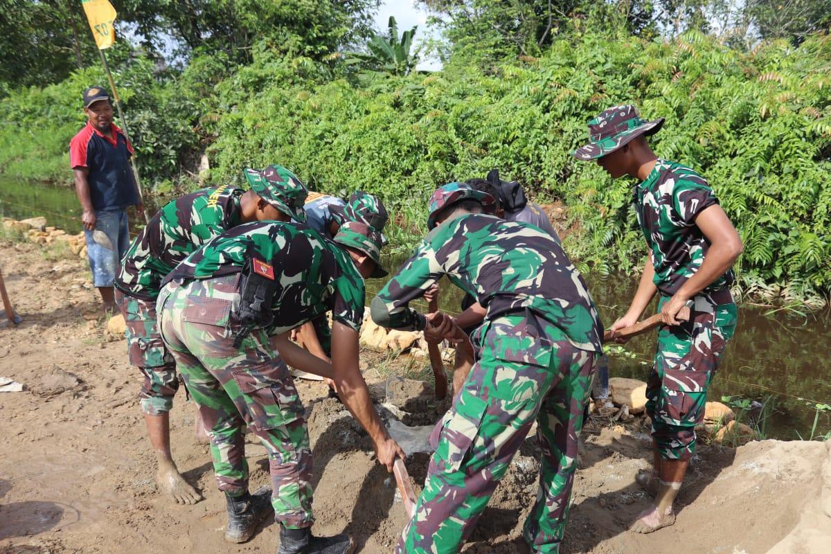 Semangat gotong royong ini di tunjukkan dengan sinergitas antara TNI, Polri dan Masyarakat dalam pelaksanaan pembangunan.