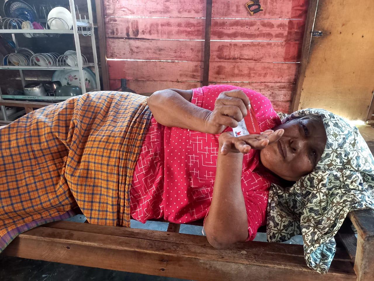 Selanjutnya, Mariam (39) berada di Dusun Timu hampir lima tahun tidak bisa lagi bangun akibat penyempitan saraf, kata dia tidak ada biaya untuk berobat ke Banda Aceh.