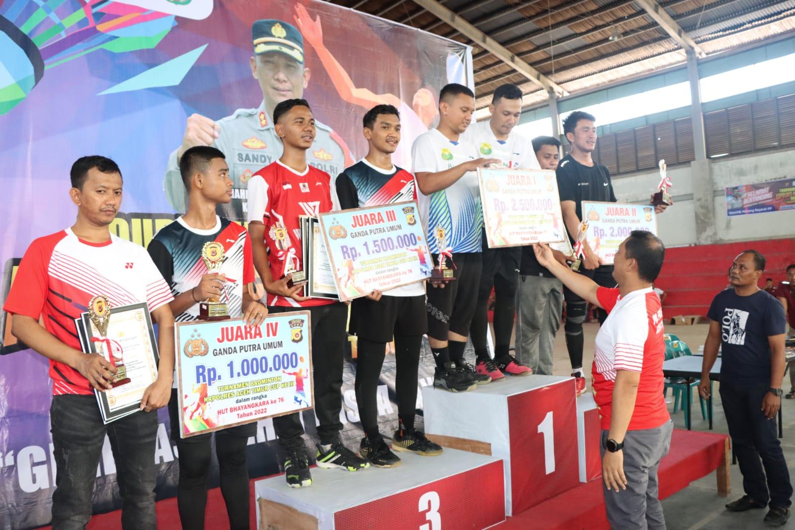 Turnamen Badminton Kapolres Aceh Timur Cup III Berakhir, Berikut Pemenangnya