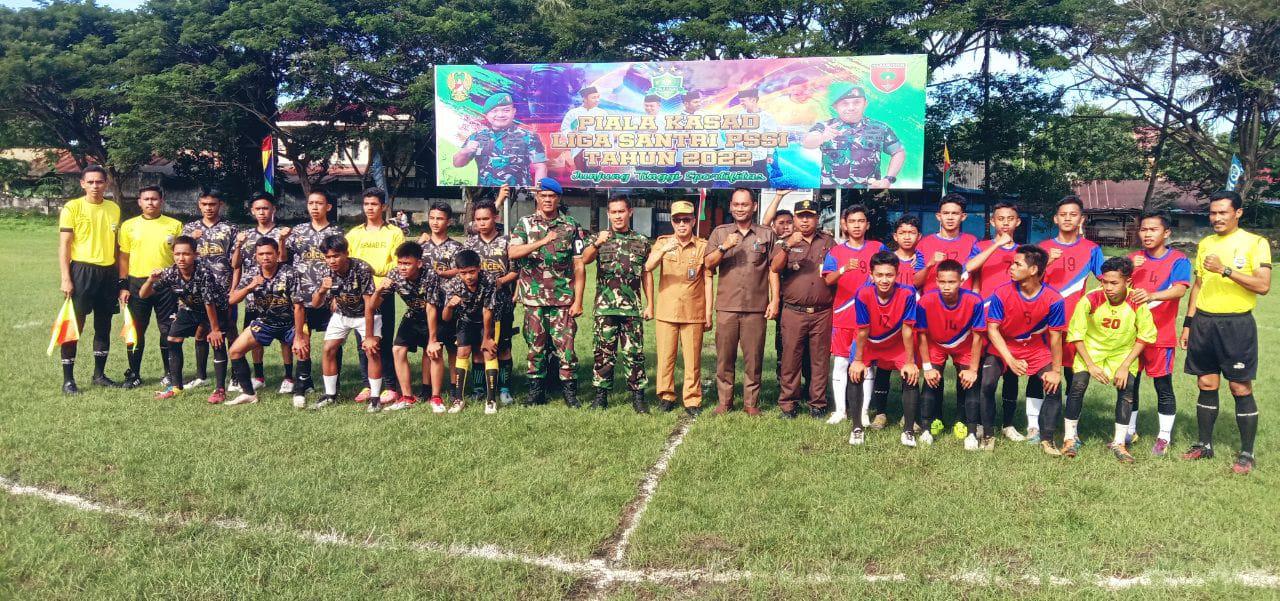 BANTAENG – Turnamen Sepak Bola Liga Santri Piala Kasad di wilayah Kodim 1410/Bantaeng Tahun 2022 secara resmi dibuka pada Senin, (20/06/2022) siang.