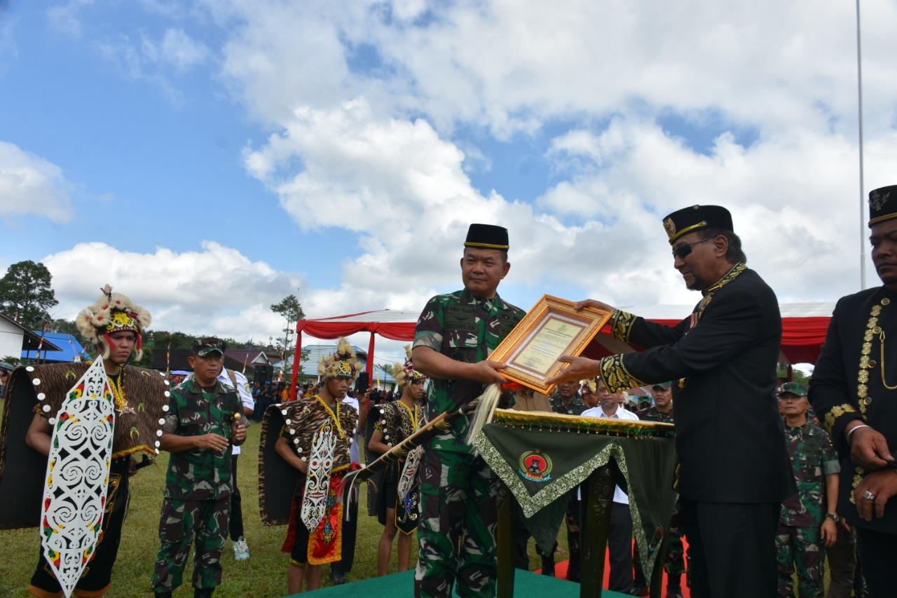 Kasad beserta rombongan tiba di lapangan Desa Panca Jaya, Kec. Muara Kaman, Kab. Kutai Kartanegara terima Tradisi Tepung Tawar (Penyambutan adat) dan di sambut Bupati Kutai Kartanegara Edy Damansyah, Danrem 091/ASN Brigjen TNI Dendi Suryadi, SH., MH, Forkopim dan Sultan Kutai Kartanegara Aji Pangeran Adipati Praboe Soerya Adiningrat