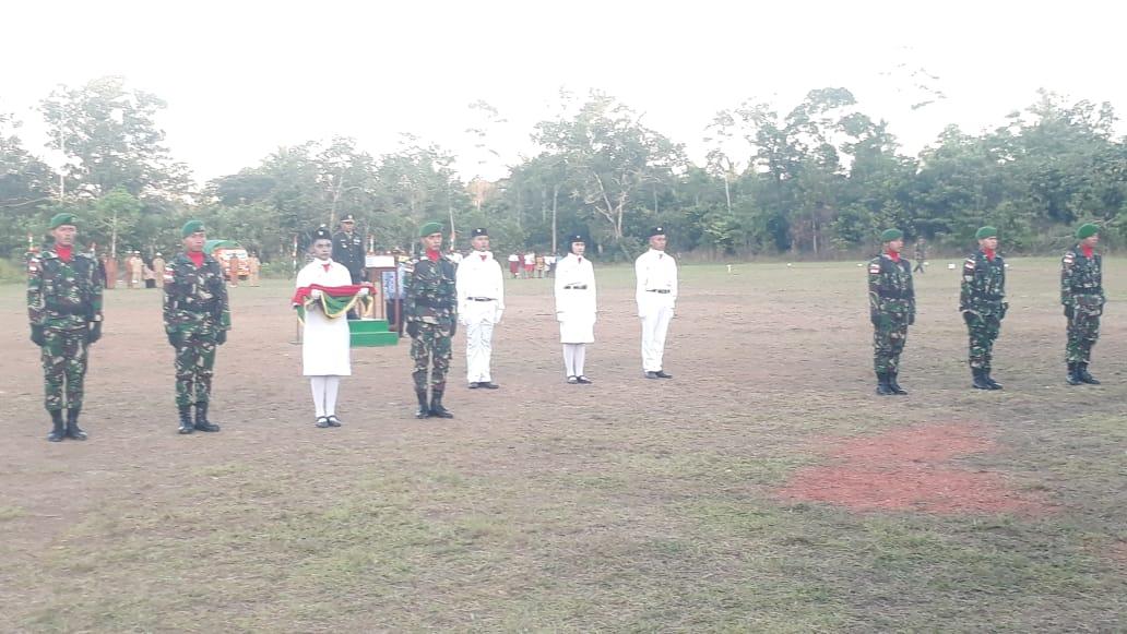 Upacara HUT Ke-77 Kemerdekaan RI di Perbatasan Papua, Satgas Yonif 123/Rajawali Turut Andil