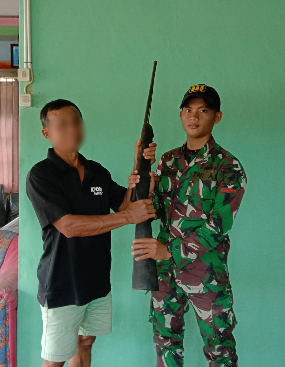 Warga Perbatasan RI-MLY Taat Hukum Serahkan Senjata Api Rakitan Kepada Satgas Pamtas Yonif 645/GTY
