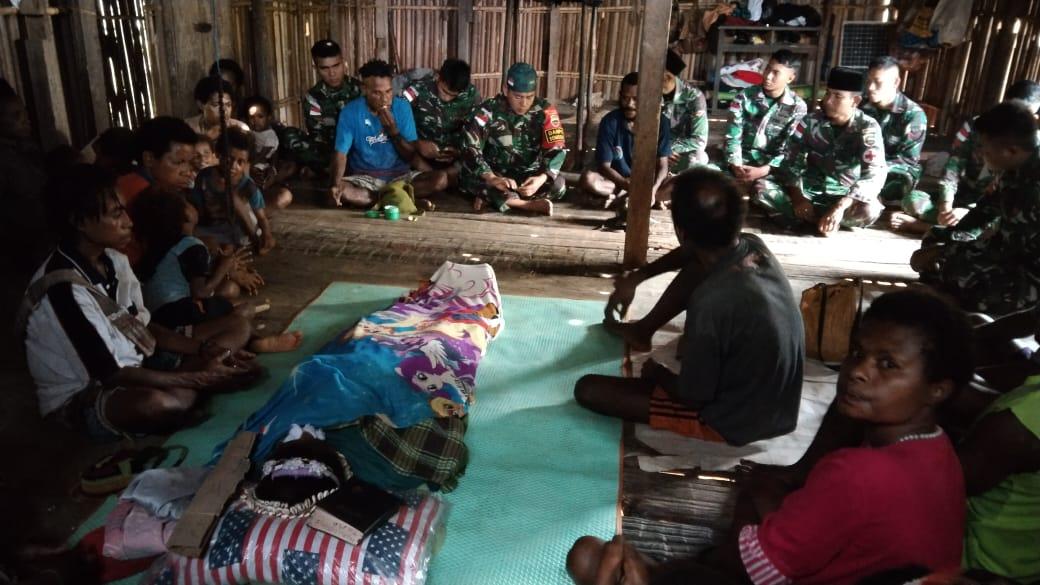 Wujud Kepedulian, Satgas Yonif 126/KC Berikan Sembako ke Rumah Duka Salah Satu Warga Perbatasan