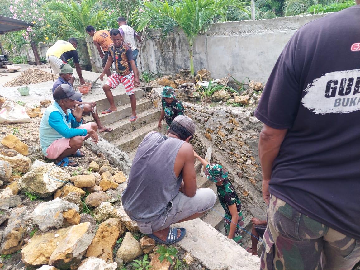 Wujud Toleransi Antar Umat Beragama, Satgas Kodim Maluku Yonarhanud 11/WBY Laksanakan Karya Bakti di Gereja Desa Tultrean