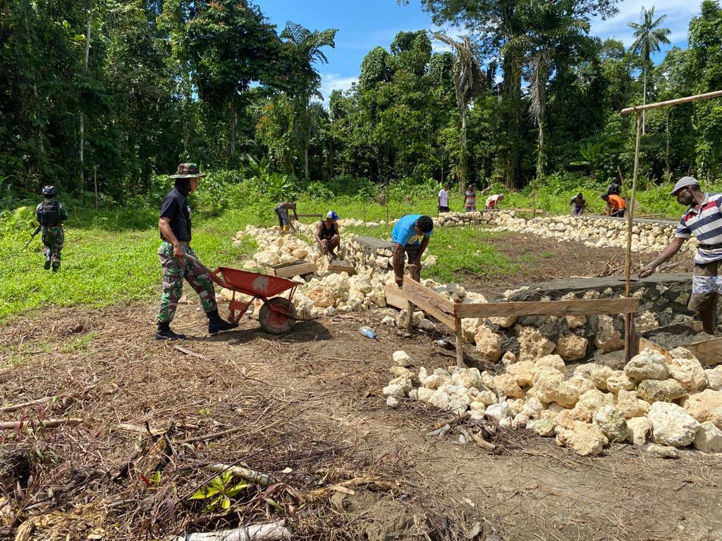 Wujudkan Impian Jemaat, Satgas Pamtas Yonif 711/Rks Bantu Membangun Gereja